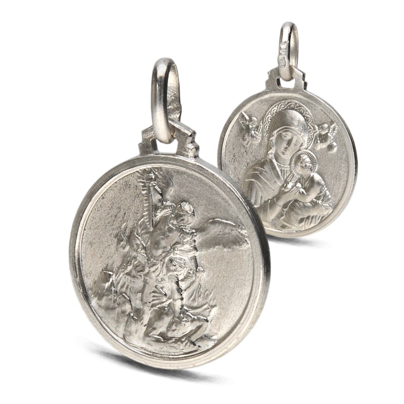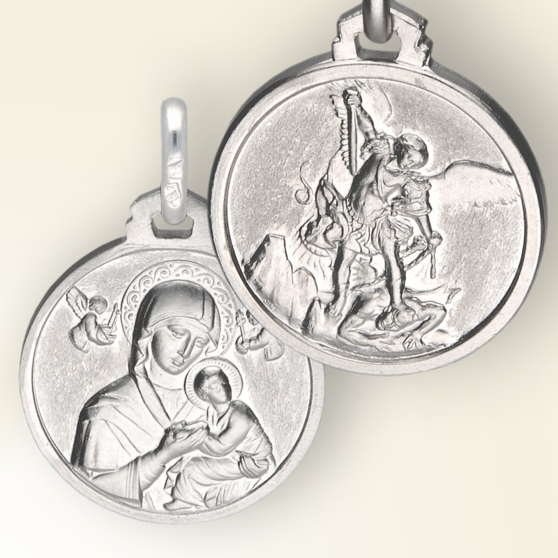 Z jednej strony przedstawia wizerunek Świętego Michała Archanioła, patrona i obrońcy przed złem, z drugiej – Matkę Bożą Nieustającej Pomocy, symbol opieki, nadziei i wiary.